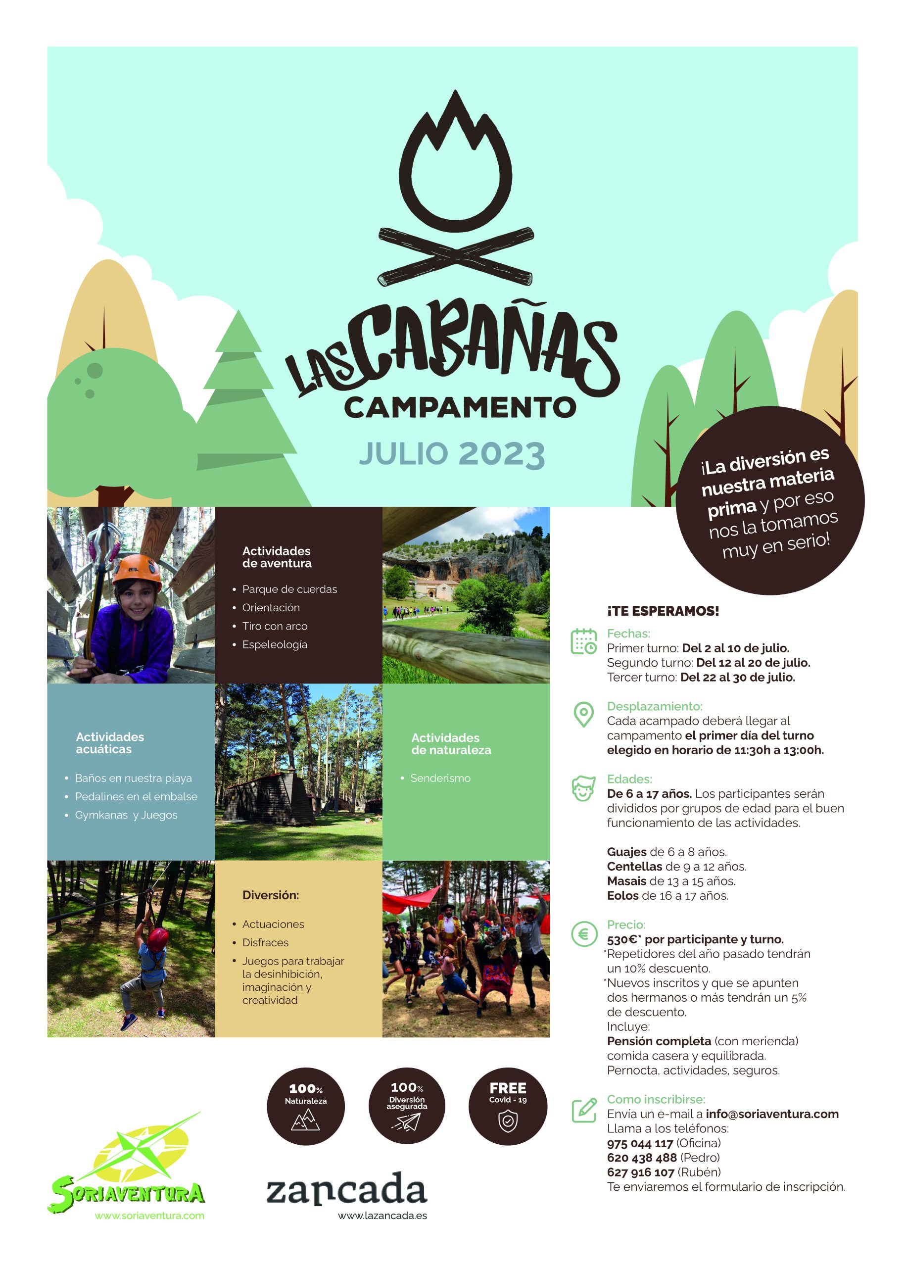 Volvemos al campamento las cabañas, este verano 2023 volvemos para divertirnos con mas fuerza que nunca y unas instalaciones totalmente renovadas, cabañas totalmente nuevas, baños mejorados y algunas otras cosas que podréis ver a parte de un programa lleno de diversión y aventura.