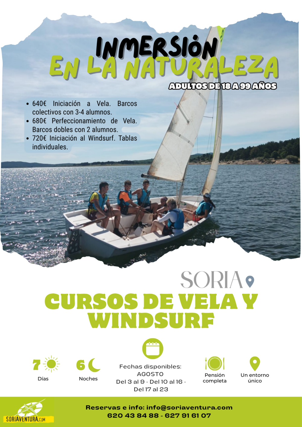 Soriaventura ofrece 3 cursos semanales en el mes de agosto, para adultos a partir de 18 años y sin límite de edad. Solo es necesario saber nadar y tener ganas de disfrutar de la naturaleza en un ambiente náutico.